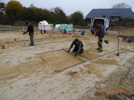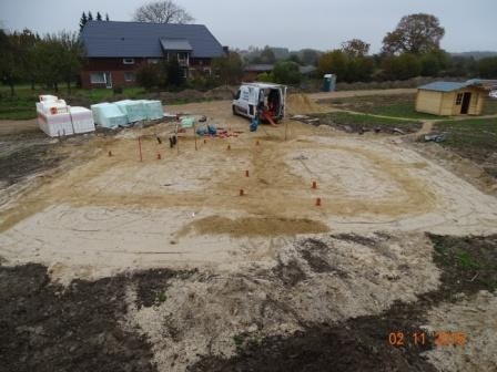 Kalle ist glücklich. Nachdem er nun mit Runas und Jakobs Hilfe in den letzten beiden Tagen bestimmt schon 10 Ladungen Sand mit seiner kleinen Schubkarre in der Grube verteilt hat, kommt nun der Radlader und hilft ein bißchen mit.