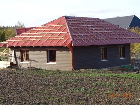 Und so sieht das dann aus, wenn der Stiel durch die Strebe geht. Vier Streben sind am Ende des Tages fertig, alle Fenster sind eingebaut und die Türen stehen zumindest schon einmal im Haus.