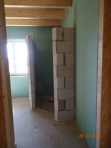 Heute puzzlen wir an mehreren Baustellen gleichzeitig herum. Nils baut im Gäste-WC die erste Fensterbank ein und die Wasseranschlüsse für die Dusche und das Waschbecken dort. Gleichzeitig wird ein Teil des Gäste-WCs gefliest und die Mauer der Dusche im Bad vervollständigt. Außerdem bringen wir stückchenweise restliche OSB-Platten und/oder Rigips an die Wände.