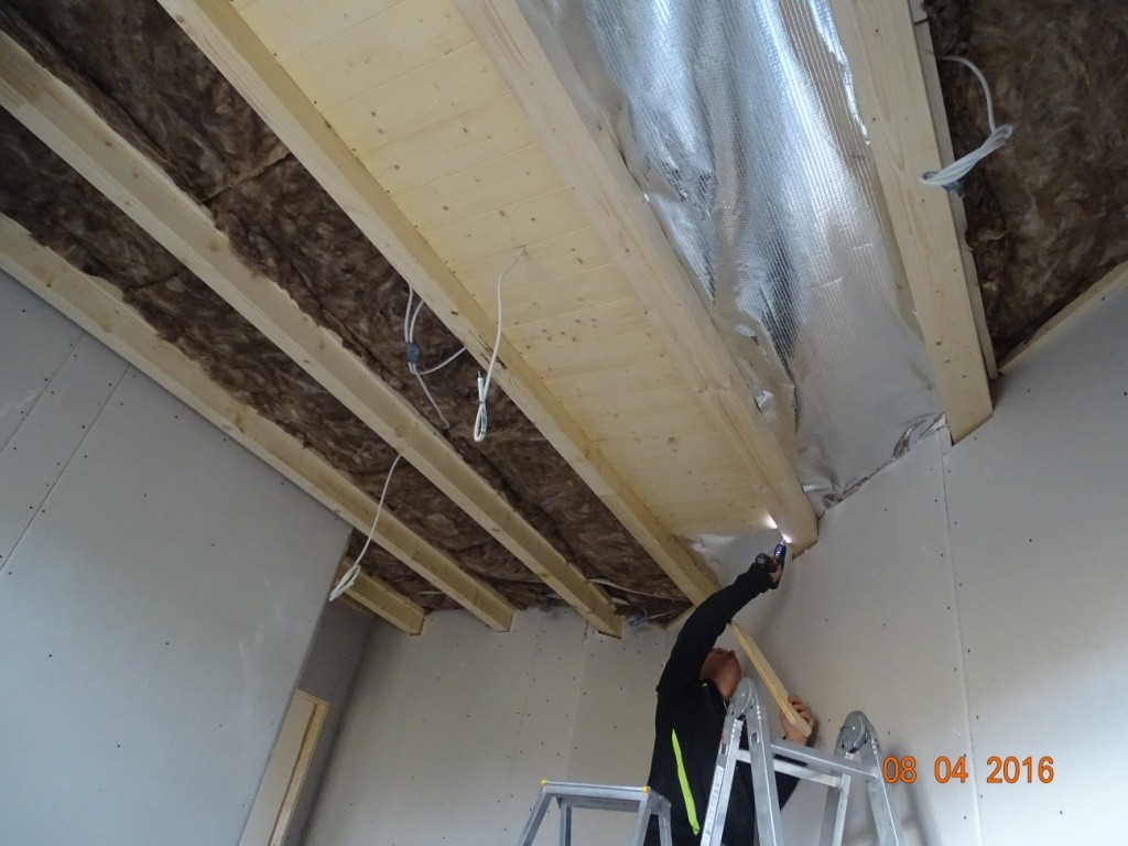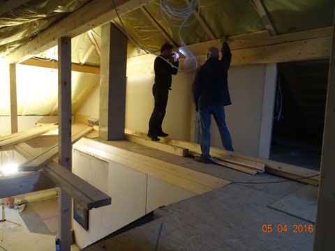 Wir puzzlen uns weiter durch kleinere Arbeiten, die halt irgendwann gemacht werden müssen. Das ist ein bißchen unbefriedigend, da man nicht unbedingt abends sieht, was man geschafft hat. Es sind jetzt aber alle Wände fertig bis auf eine Wand zwischen Bad und Runas Zimmer und zwei Wände im Büro. Der Grund, warum wir diese drei Wände noch nicht komplett zu machen, ist, dass dort noch Wasseranschlüsse bzw. Halterungen für Waschbecken etc. angebracht werden müssen. Auch noch so eine Kleinigkeit, die irgendwann mal gemacht werden muss ;-))